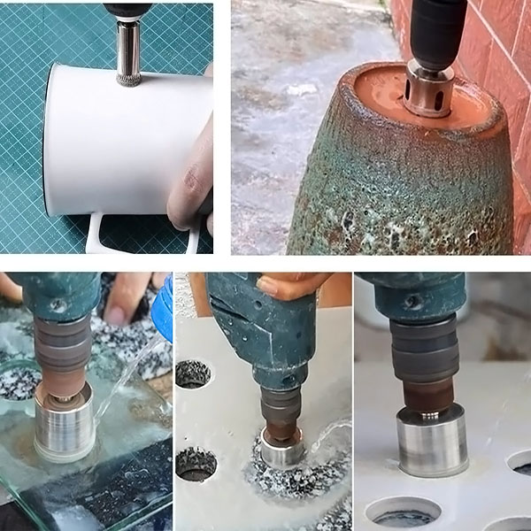 Per ottenere fori puliti e professionali ogni volta, senza crepe e senza disordine. Perfetto per diversi materiali come piastrelle, vetro e granito.