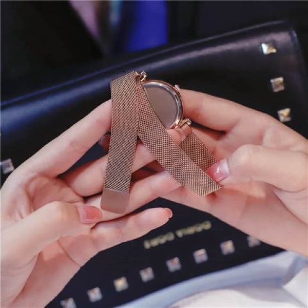 Questo stiloso orologio da polso al quarzo è appositamente realizzato con una banda magnetica.